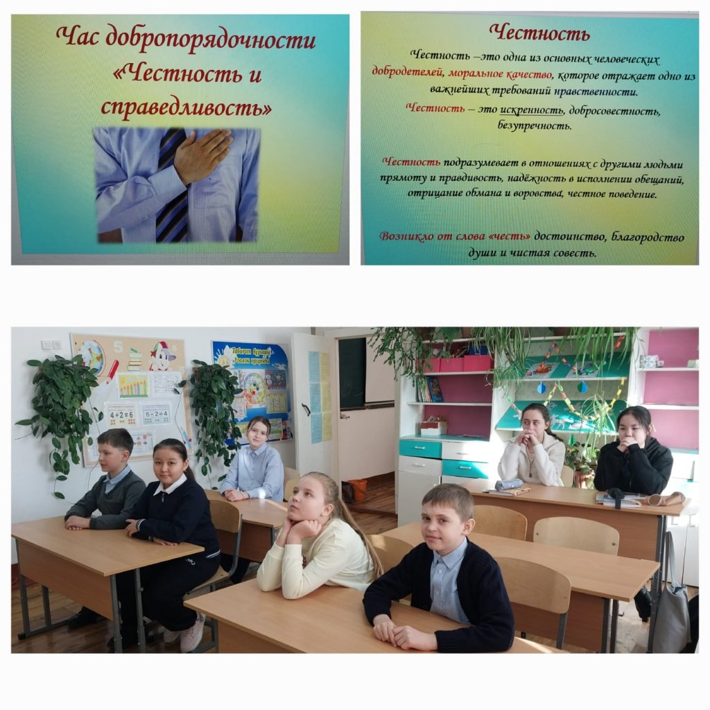 15.01.2026 "Заң және тәртіп" айлығы аясында 5-11 сыныптар арасында "Адалдық және әділдік" тақырыбында сабақ өткізілді.